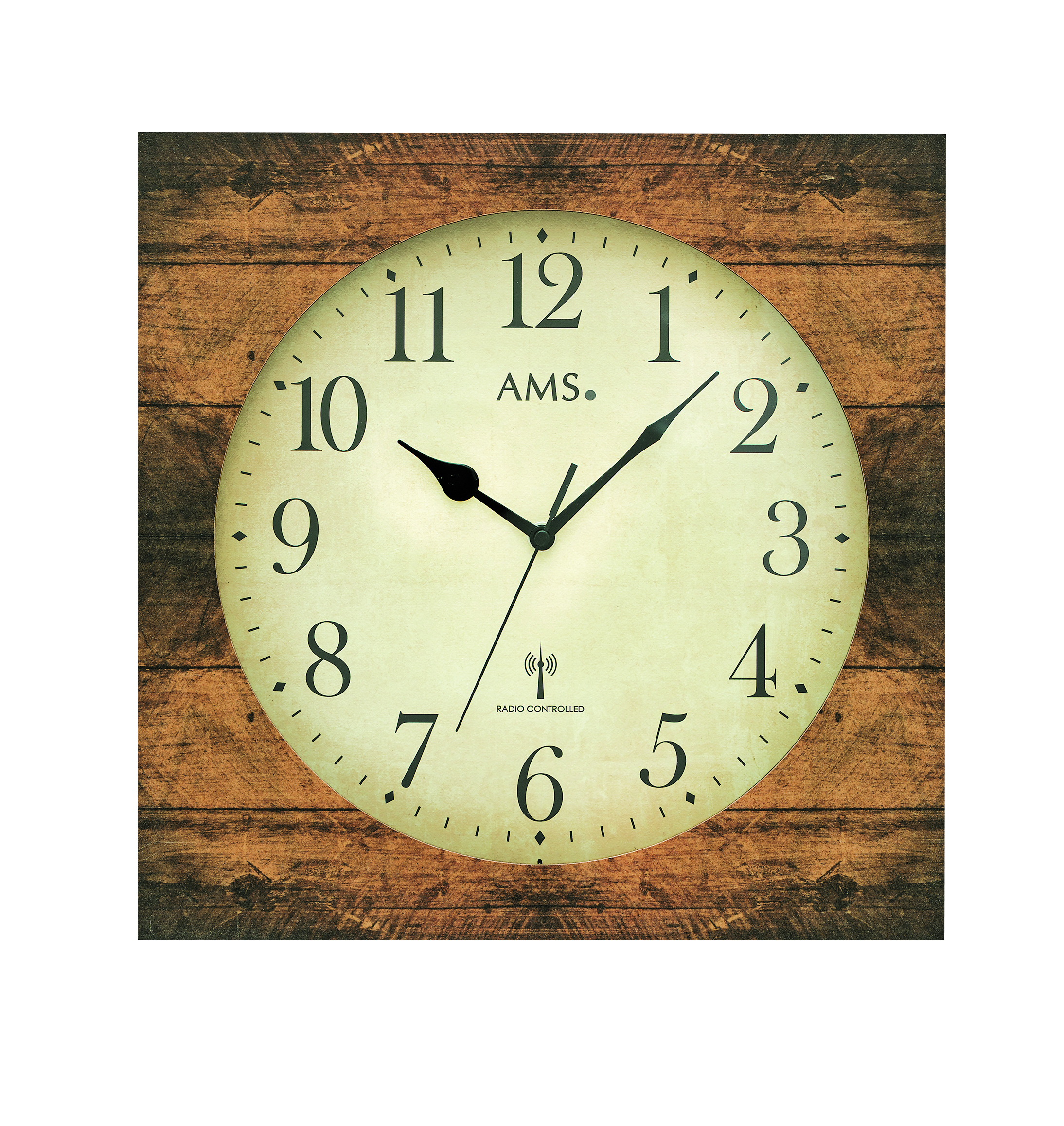 This trendy vintage style AMS radio controlled clock uses a high quality radio controlled movement that runs on two AA batteries. The radio transmitter is located in Mainflingen/Frankfurt. The range of the transmitter is about 1,000 - 1,500 km. Outside this range, the clock is not functional.
