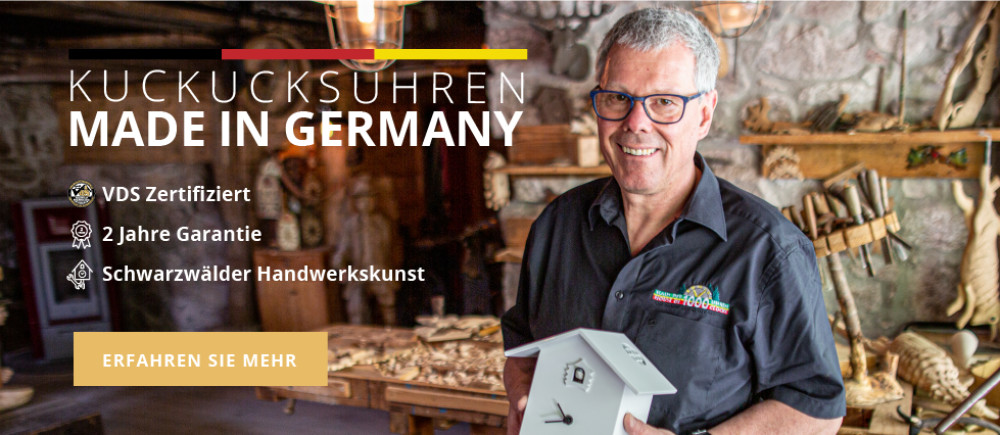 Begonnen hat die Produktion der Kuckucksuhr Schwarzwald bereits im 17. Jahrhundert. Die Bauern waren arm, die Ernten spärlich und der Werkstoff Holz in großen Mengen vorhanden. Die findigen Schwarzwälder Bauern konnten gut schnitzen und wollten sich ein Zubrot verdienen. Da Uhrwerke aus Metall zu teuer waren, entwickelten sie Uhrwerke aus Holz, die mechanisch arbeiteten. Die Schwarzwald Uhr war vom Preis her günstig, solide und ansprechend verarbeitet. Das Besondere an den Uhren war aber der Kuckuck, der auch heute noch so wichtig ist. Zu jeder vollen Stunde öffnet sich ein Türchen, der Kuckuck schaut heraus und ruft die Stundenzahl. Die Anzahl der Rufe gibt die Stundenzahl an. Zur halben Stunde ruft der Kuckuck jeweils einmal. Zu späteren Zeiten wurde die original Kuckucksuhr immer noch weiter verbessert. Die Holzuhrwerke der ersten Kuckucksuhren wurden durch Uhrwerke aus Metall ersetzt und auf Wunsch konnte noch ein Musikspielwerk gewählt werden. Die klassische und qualitativ hochwertige Fertigung, der traditionellen Schwarzwald Uhr, ist aber erhalten geblieben. Die liebevoll geschnitzten Fronten werden in unzähligen Variationen angeboten, sodass fast jede Uhr ein anderes Äußeres hat.